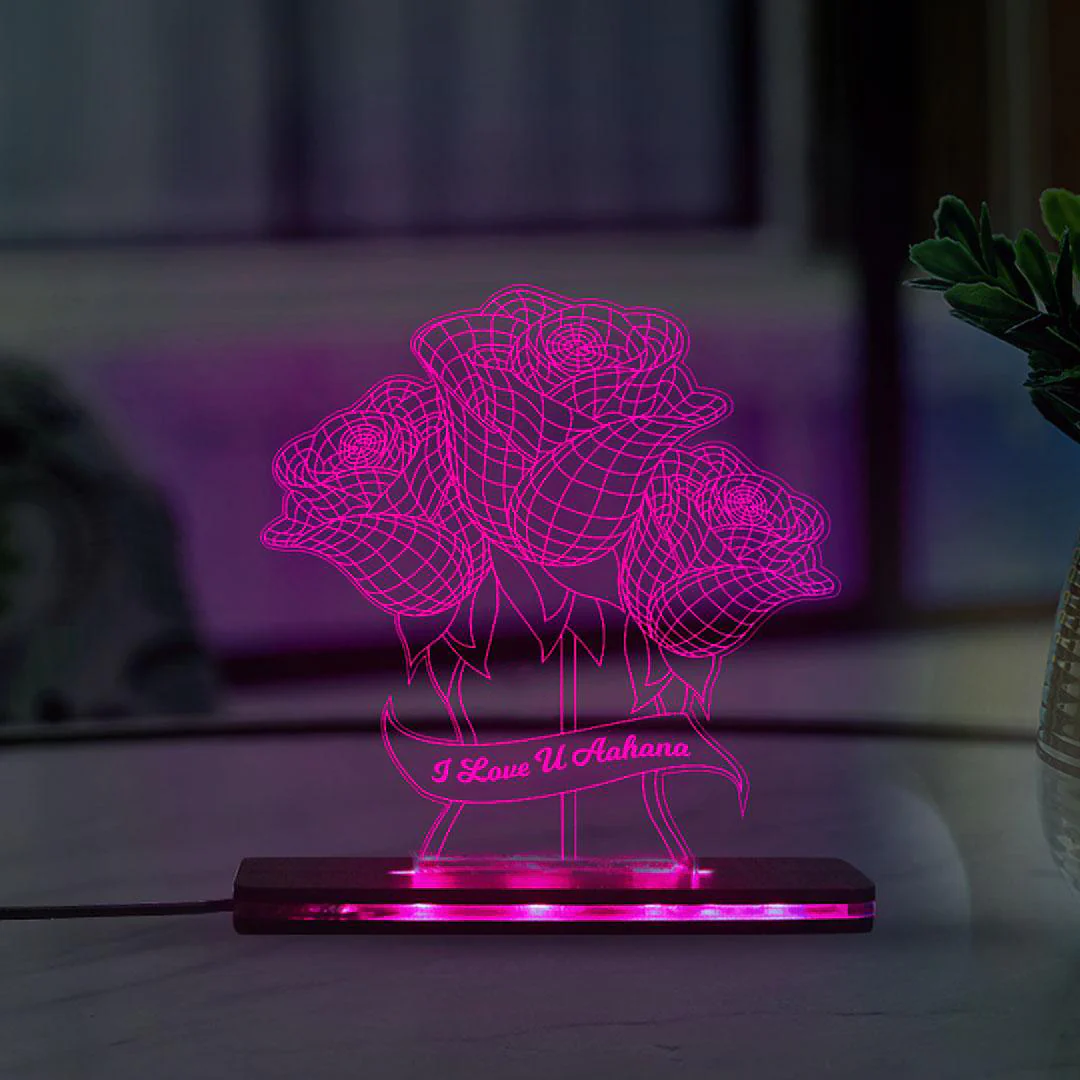 3d Acrylic Multi-Colored Rose LED Lamp