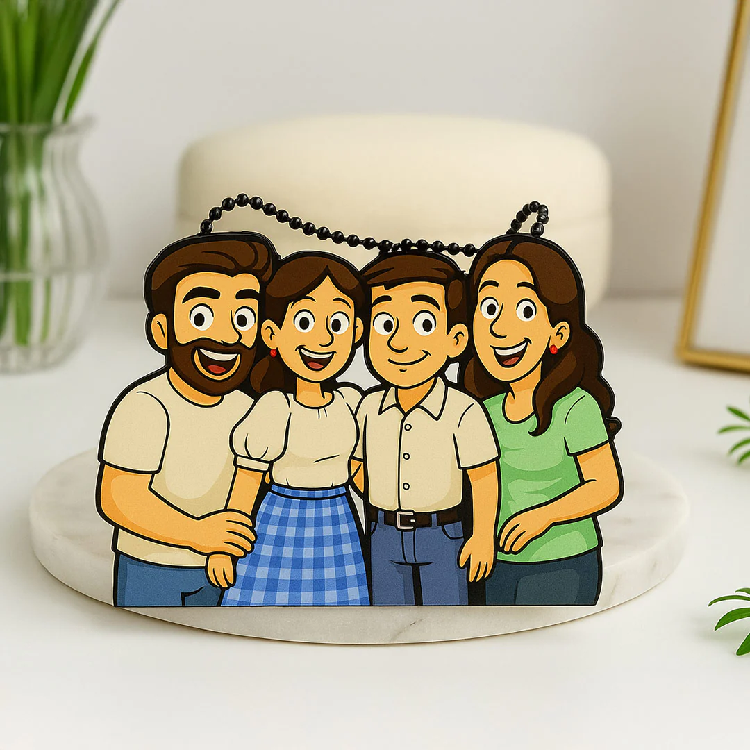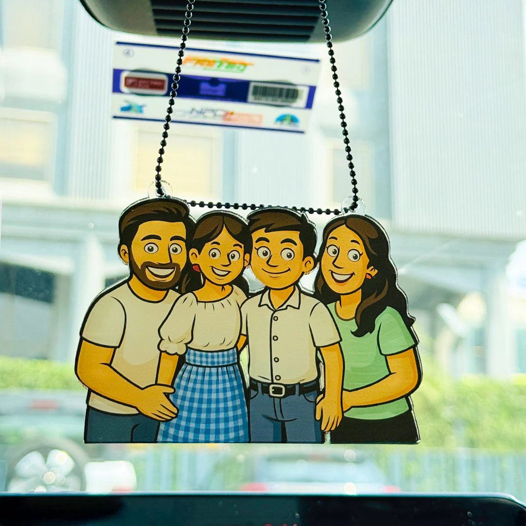 Turn your family into a fun cartoon and take them wherever you go! This Customized Family Car Hanging is made from premium acrylic and printed in vibrant colors, featuring a cartoon version of your family members. It’s lightweight, durable, and perfect for hanging on your car’s rearview mirror.