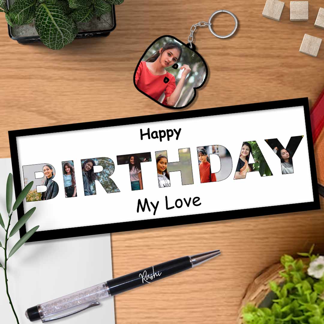 Elevate your birthday gifting with Love Craft Gifts’ Happy Birthday Frame Gift set. This carefully curated package includes a personalized 6×12″ frame, an adorable keychain, and a stylish pen, making it the perfect combination to celebrate that special day.